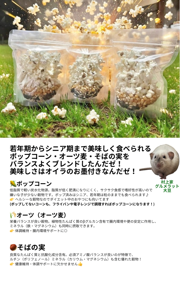 ポップコーン・オーツ麦・そばの実を